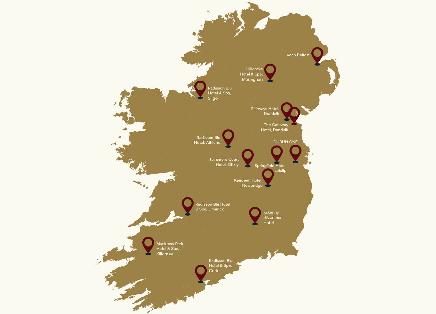The iNUA Hotel Collection gift voucher is the perfect way to say “thank you” to your colleague or corporate partner! Your recipient can choose to spend their gift voucher in the Hibernian Hotel Kilkenny, Muckross Park Hotel & Spa, Tullamore Court Hotel, Springfield Hotel, Hillgrove Hotel & Spa, or any one of the Radisson Blu Hotels in Athlone, Cork, Limerick, and Sligo.